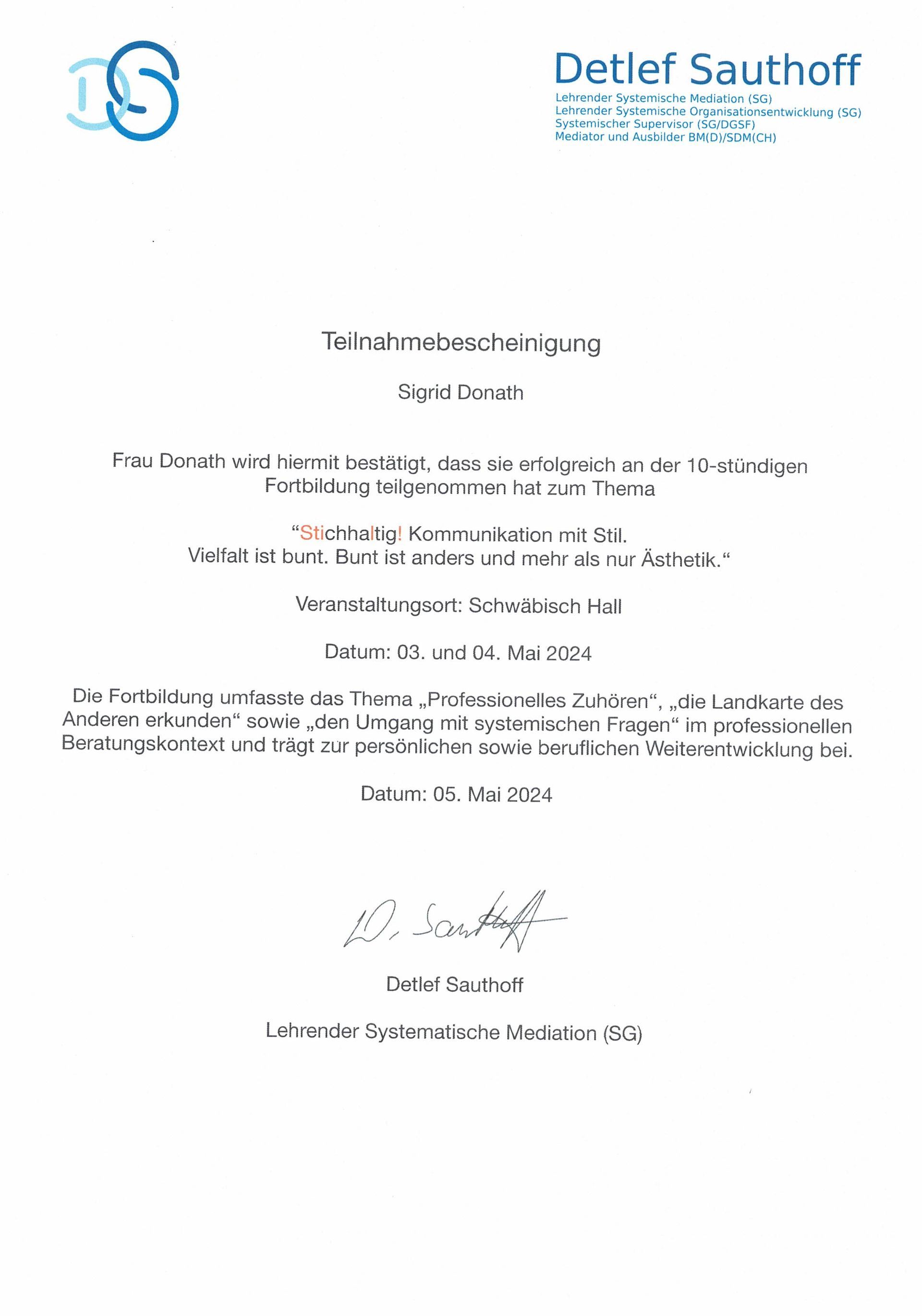 zertifizierte Mediatorin, Verfahrensbeiständin, Umgangs-, Ergänzungs- und Verfahrenspflegerin,